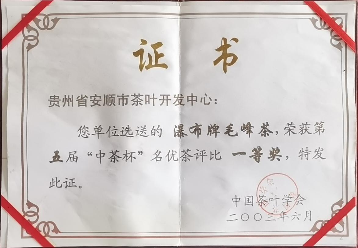 瀑布牌毛峰茶榮獲第五屆“中茶杯”名優茶評比一等獎