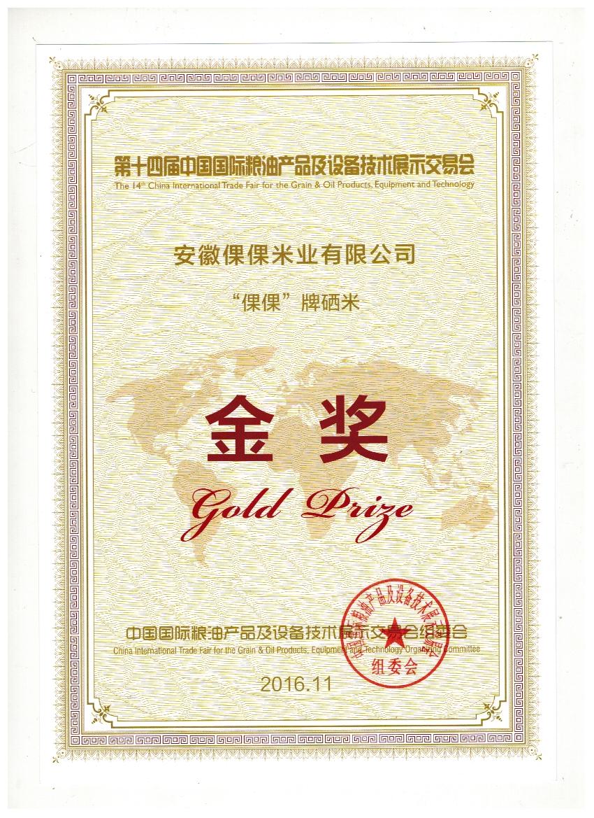 第十四屆中國國際糧油產品及設備技術展示交易會金獎