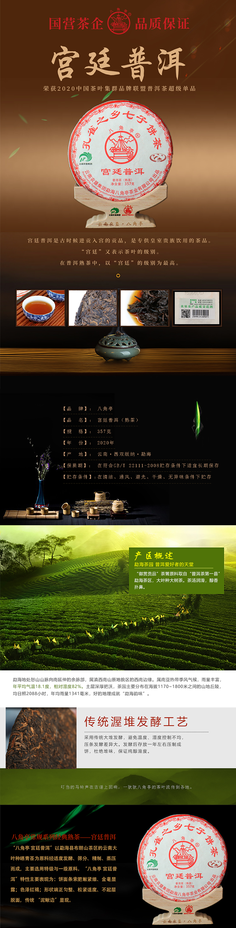 云南農墾集團勐海八角亭茶業有限公司(簡稱八角亭茶業,原黎明茶廠),坐落于普洱茶核心產區云南省西雙版納傣族自治州勐??h勐遮鎮,隸屬于云南省農墾集團有限公司。