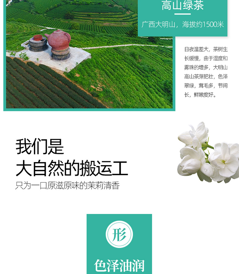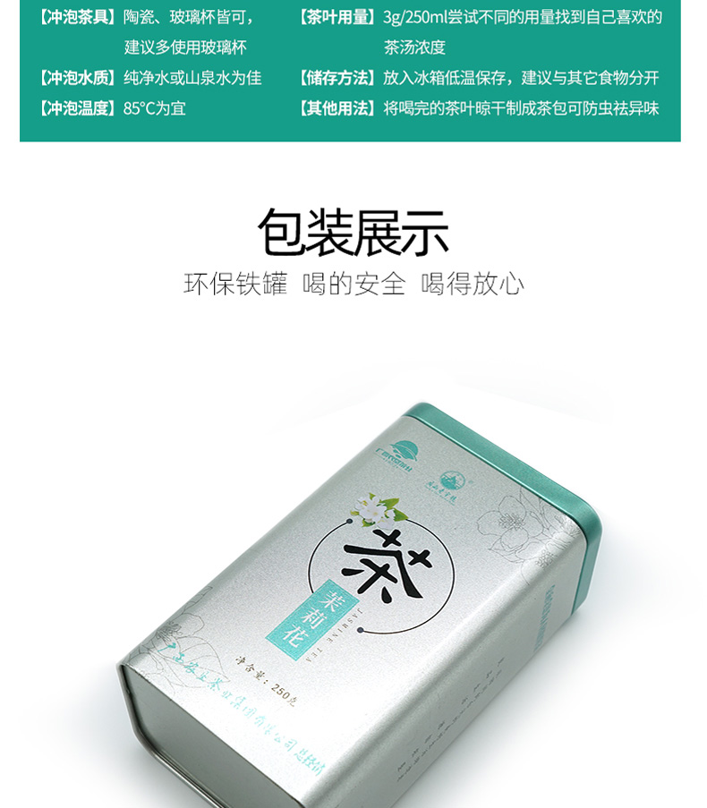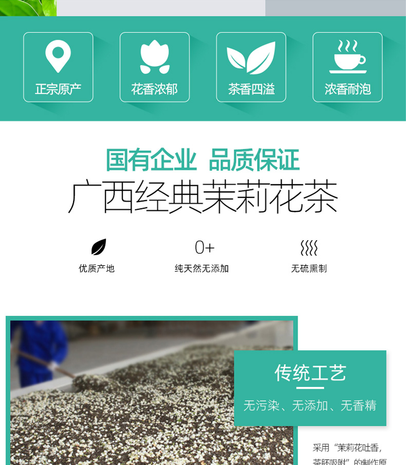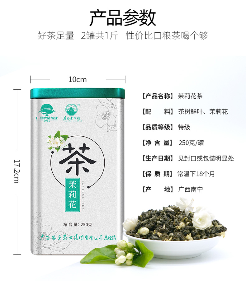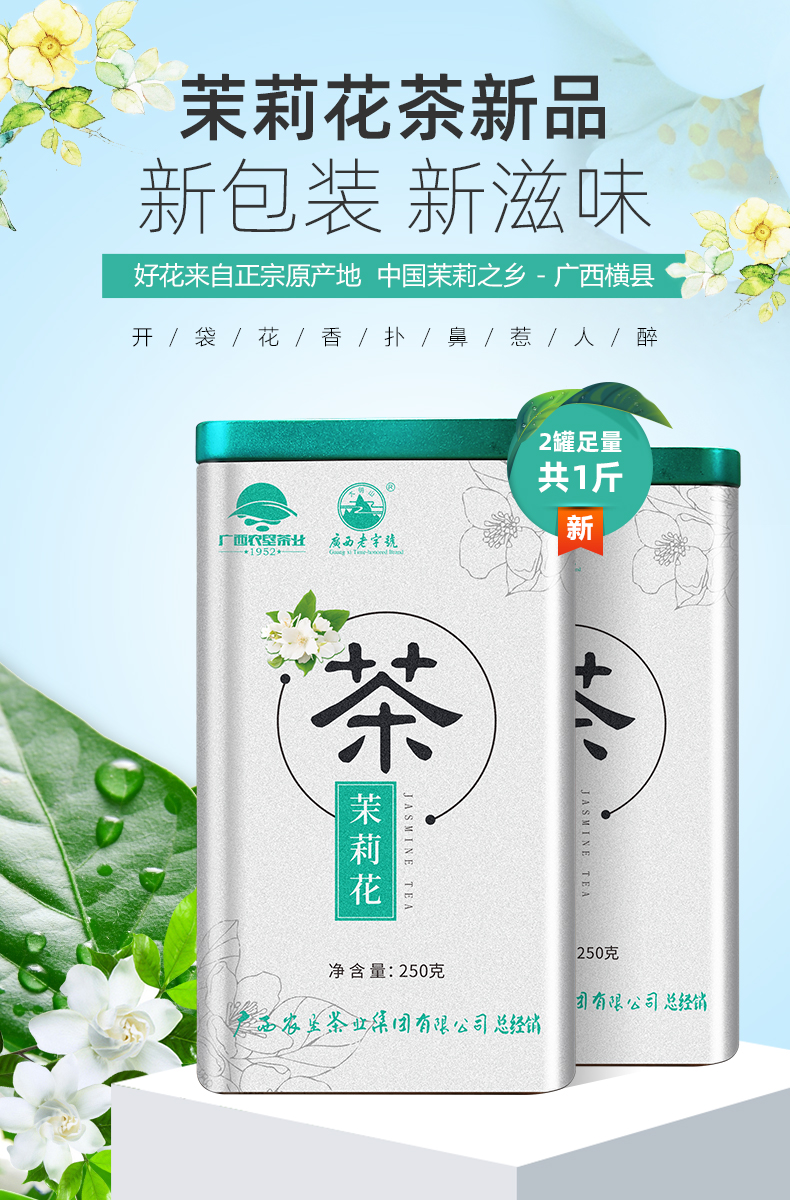 中國農墾茉莉花茶特級茶葉茶干250g散裝茶葉罐裝茉莉花茶孕婦花茶 茉莉花茶